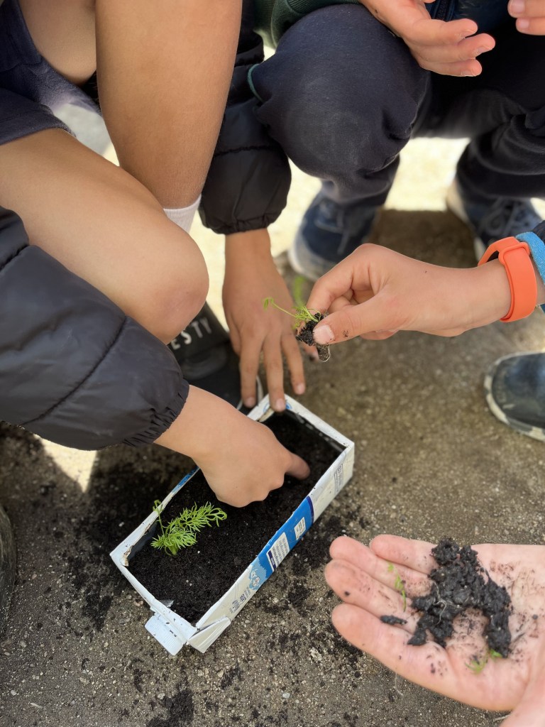 Los invernaderos de los colegios y las familias que apadrinaron semilleros por Semana Santa han hecho que tengamos un buen plantel que trasplantar. Aprendemos el noble arte del trasplante a tierra y el repicado a macetas.