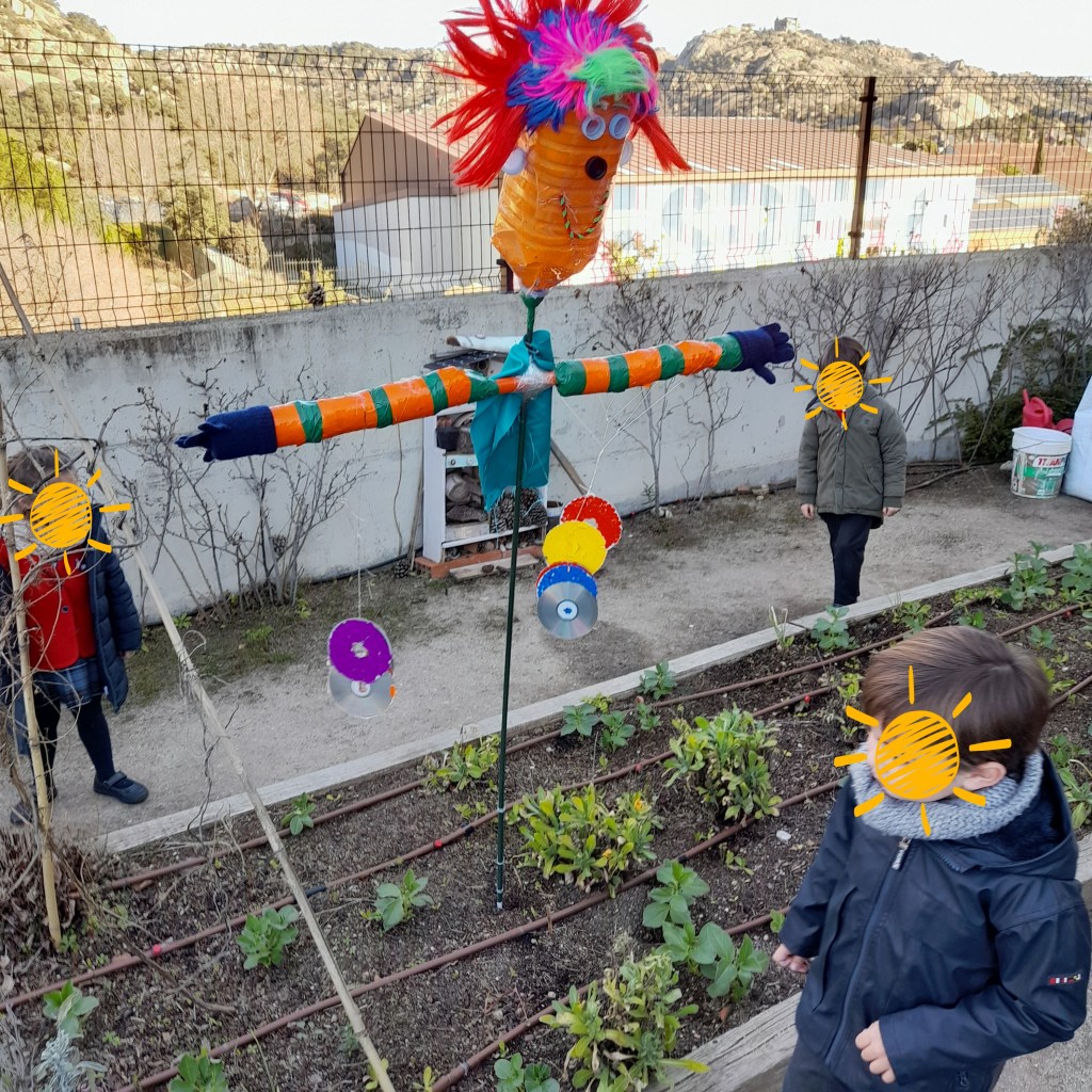 En el colegio Peñalar empezamos el segundo trimestre con mucha ilusión y ganas de hacer muchas actividades. Los niños y niñas se motivaron para construir con material reciclado un estupendo espantapájaros encantador. Para construirlo han usado solo materiales reciclados siguiendo los principios básicos de la huerta al cole, la reducción de residuos y la economía circular.
