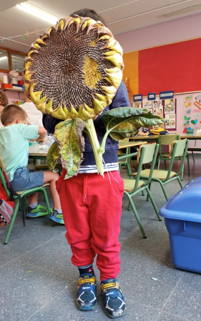 ¡Ojo al girasol del Colegio Lourdes! de aquí vamos a sacar pipas para sembrar en todos los coles y para muchas cosas más