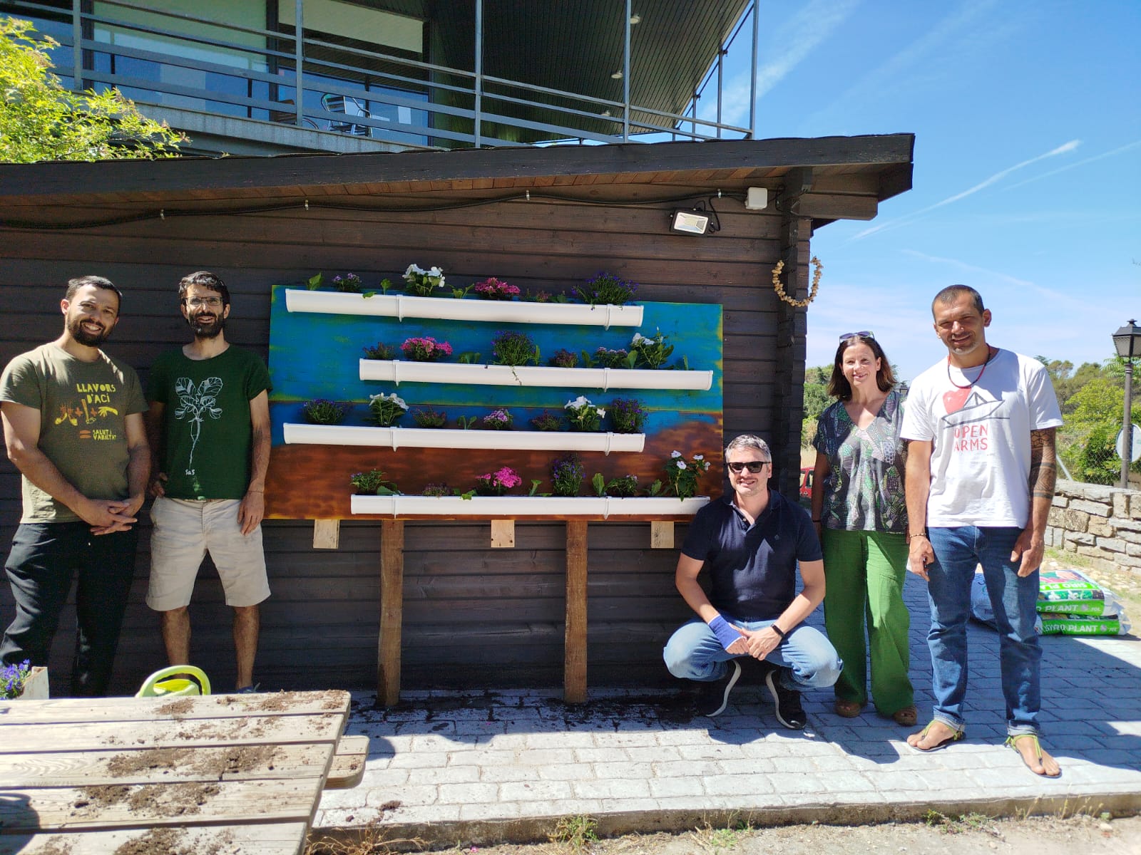 Durante la mañana tuvimos a Juan el Hortelano haciendo también un taller de jardín vertical con canalones para el Aula Ambiental